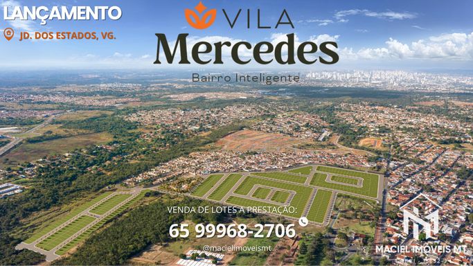 O Vila Mercedes é um bairro estruturado, com infraestrutura completa, em uma região de crescimento, com infraestrutura planejada, rodeada de conveniências. Com fácil acesso ao Centro e às principais rodovias e à ponte que conecta Várzea Grande à Cuiabá. Perto de tudo que você precisa: -3 minutos do Atacadão; -15 minutos do Várzea Grande Shopping; -14 minutos de Cuiabá. Um investimento como nunca se viu, onde a comodidade e segurança fazem parte do dia a dia: -Ruas sem saída para uso prioritário dos moradores; -Asfalto com meio-fio; -Iluminação pública; -Rede de energia, água e esgoto; -Pontos de ônibus; -Drenagem pluvial. O Vila Mercedes vai contar com uma praça com lazer para você e sua família: -Parquinho de areia; -Academia ao ar livre; -Petpark; -Playground; -Pergolado; -Pista de Skate; -Meia quadra de basquete; -Futmesa e ping pong; -Labirinto; -Praça food truck; -Pista de bicicross; -Bicicletário. Terrenos com tamanhos a partir de 180 m², e valores de venda a partir de R$ 118.514,00 (parcelamento em até 240 vezes, com sinal a partir de R$ 988,00 e parcelas mensais a partir de R$ 469,12). Confira mais condições especiais de lançamento! Gostou? Entre em contato e fale com um de nossos corretores.